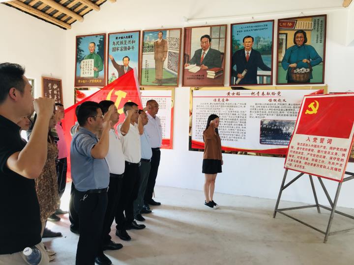 在黃士韜故居,在莊嚴的黨旗下,黨員們舉起右手緊握拳頭,用鏗鏘有力、慷慨激昂的宣誓聲再次重溫入黨誓詞。