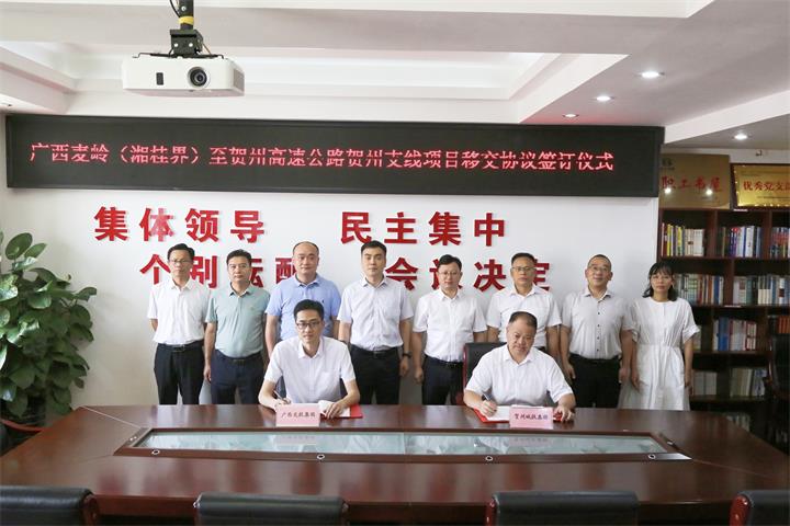 賀州支線西接麥賀高速公路主線,東經(jīng)連賀高速公路與二廣高速相連,公路建設(shè)打通了旺高工業(yè)基地、西灣工業(yè)基地與華北、華中及沿海地區(qū)的聯(lián)系通道,工程建設(shè)對優(yōu)化賀州市路網(wǎng)結(jié)構(gòu),構(gòu)建廣西東部和中部地區(qū)的重要門戶和樞紐,落實賀州市“十四五”規(guī)劃及綜合交通運輸發(fā)展規(guī)劃,提升高速公路過境效率,加速助力實施鄉(xiāng)村振興,促進(jìn)賀州市經(jīng)濟社會發(fā)展具有重要意義。項目移交協(xié)議的簽訂,標(biāo)志著項目正式移交廣西交投集團實施,為項目快速推進(jìn)打下堅實基礎(chǔ)。簽約儀式后,雙方還就如何加快項目建設(shè),不斷深化交流合作進(jìn)行了探討。