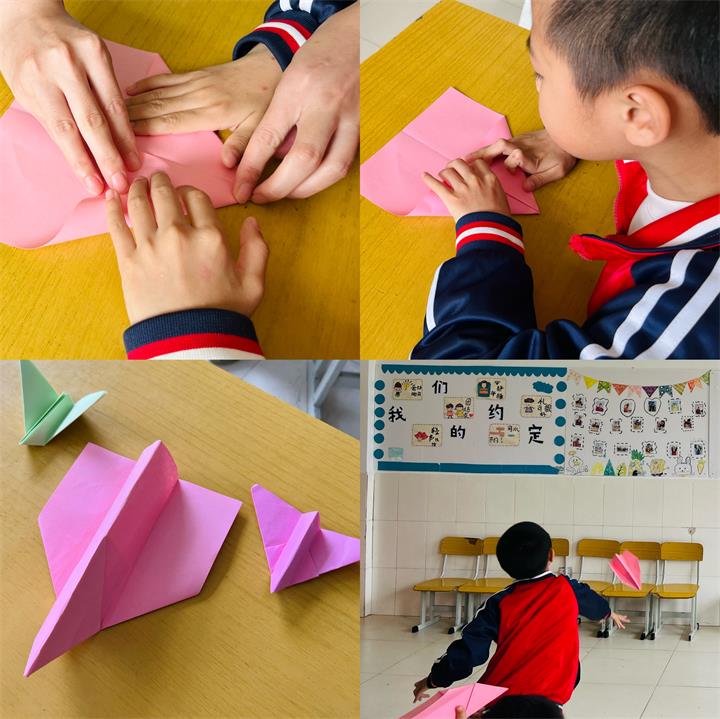在啟智(9)班教室,小貸公司黨支部書記李羅清帶領(lǐng)學(xué)生集體朗誦古詩(shī)詞,黨員黃雨為孩子們生動(dòng)講述了《高大個(gè)和胖先生的故事》繪本,大家同孩子們玩折紙游戲,用心向孩子們傳遞來(lái)自社會(huì)的溫暖??此坪?jiǎn)單的折紙,經(jīng)過(guò)耐心指導(dǎo)、反復(fù)嘗試,一架架色彩繽紛、形態(tài)各異,充滿了無(wú)限的愛(ài)與希望的紙飛機(jī)終于呈現(xiàn)在眼前,孩子們玩的不亦樂(lè)乎。
