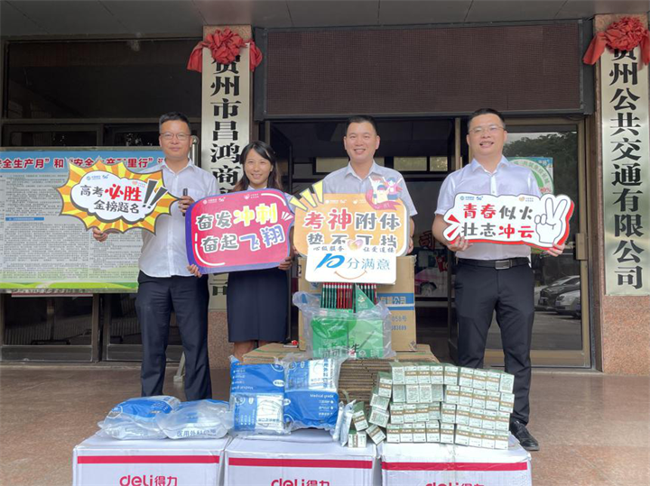 為確保考生能夠順利進(jìn)行考試,公交公司聯(lián)合賀州移動公司,準(zhǔn)備了“愛心助考物資”箱,內(nèi)放置2B鉛筆、口罩、風(fēng)油精、文具袋、扇子等考生必備的應(yīng)急物資,以供考生應(yīng)急使用。