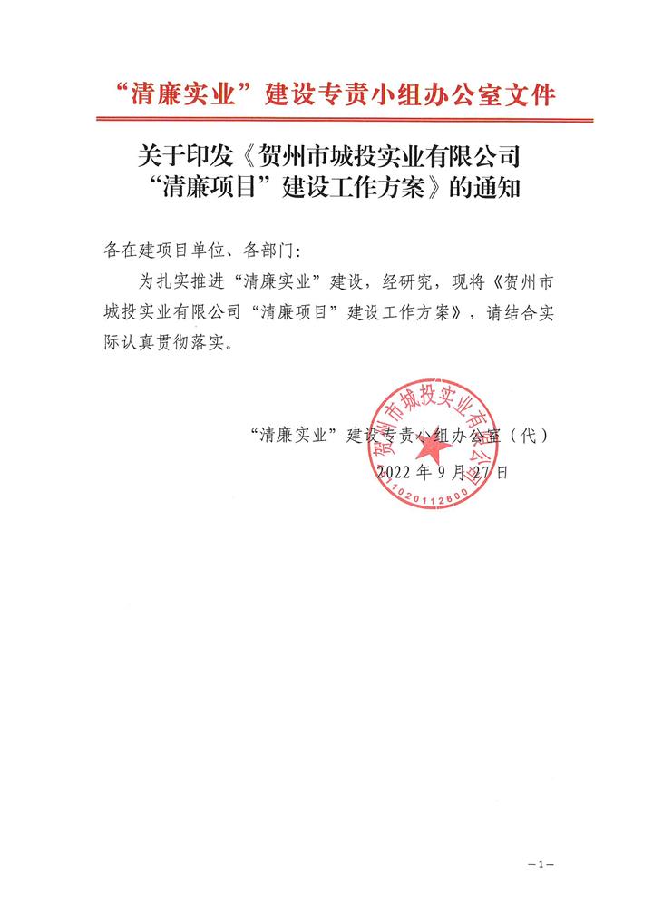 賀州城投實業(yè)公司:四位一體建設“清廉項目”