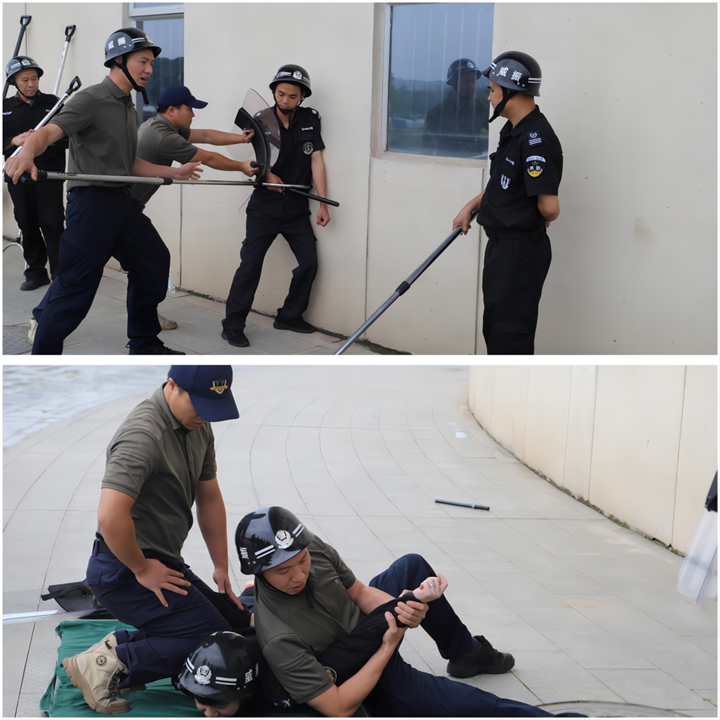 本次培訓內(nèi)容包括保安員基礎(chǔ)理論知識、法律知識、消防知識、應急處理、現(xiàn)場急救、體能訓練、擒拿格斗等內(nèi)容,課程內(nèi)容豐富。在教學課程中,教官采用了理論講授、案例討論、情景模擬、現(xiàn)場演練等多種方式,讓參訓學員如臨崗位現(xiàn)場。