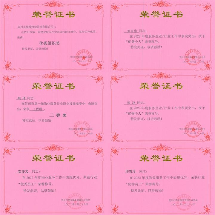 社會形象好,踐行國企擔當。2020—2022年疫情期間,堅持黨員沖鋒在疫情防控一線,按照賀州市統(tǒng)一部署,通過集中培訓、精準調度、合理安排輪值輪守等舉措,組織全體員工按照疫情防控最新要求落實無縫隙、全覆蓋出入登記、體溫測量、專業(yè)消殺等舉措,充分發(fā)揮黨員先鋒模范帶頭作用,順利實現(xiàn)了所管理的城投.東苑、城東新區(qū)公租房、人才公寓、樂居家園、城投集團辦公樓及老陶瓷廠三無小區(qū),所負責的太白社區(qū)“零感染”目標,為賀州市疫情防控做出了應有貢獻。2021年榮獲賀州市物業(yè)服務管理行業(yè)協(xié)會授予“抗擊新冠肺炎疫情優(yōu)秀企業(yè)”稱號、集團公司黨委授予2020-2021年度“優(yōu)秀黨員先鋒崗”榮譽。