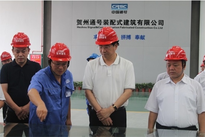 6月12日上午,廣西壯族自治區(qū)住建廳廳長周家斌一行到賀州通號裝配式建筑有限公司開展調研。